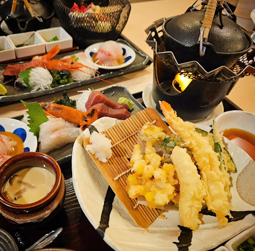厨房はワンオペなのか、とにかく料理の提供まで時間がかかる。薄暗い店内で凍えながら待つ時間は格別長く感じた。 さて、提供されたお料理は... 刺身はマグロ(ドス黒い赤身)、海老、鯛の三点盛り。新鮮さや旨みはあまり感じない。 天ぷらは、コーンかき揚げ、海老天、イカ天、極少のおくら(何故か半分)、薄いカボチャ。 まず提供された時点で冷めていて、評価の土俵にすら乗らない。 更に異常に寒い空調も相まって、どんどん冷たくなる料理。 救いはサーロインかは疑問であるがステーキは、その場で焼くので温かく食べられる。硬くはないが旨味はあまり感じない。 〆のゴマ鯛茶漬けは、だし汁を温めてあるので、おしいく食べられた。(この時点で写真を撮るモチベーションも下がり撮り忘れ) 茶碗蒸しは残念。正直なところ『とんでん』の方が圧倒的に美味しい。 あと不思議だったのが、店内は4名程の個室客に2名程の個室客と我々夫婦のみでようはガラガラ。しかし、2本電話が鳴りそれぞれ4名と6名でこれから行きたいという内容だったようだが、無碍にムリだと言って断っていたのには驚いた。 他にも信じられないようこともあったがキリがないので割愛します。 あと店内に無駄に貼られたポスターやドリンクバーが設置されるなど、準高級だった店舗の面影はなくなりさながらファミレス化したようだ。 これなら次は『とんでん』に行こうと...