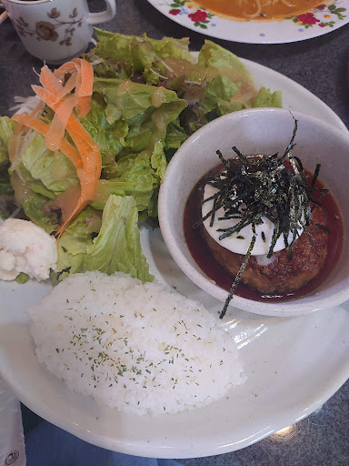 Read more日曜日の14:15頃に入店しました。店内に入った瞬間 こんにちは とウェルカムされました。 ランチのひとくちステーキとインディアンオムライス、あんみつ、ホットコーヒー、デザートプレートを注文しました。女性の店主さん!?が提供した更のブランドと由来などを教えてくださいました。正直わたしは興味ありませんでしたが店主の料理と共に器も楽しんで欲しい!?とお客さんに対する純粋なサービス心に感動しました。 相方が頼んだひとくちステーキを1つ貰いましたがぷりっとして柔らかくジューシーでとても美味しいでした。インディアンオムライスと中がカレーピラフで美味しかったです👌セットで付いてきたスープも大好きな味で大満足でした。ホットコーヒーは英国🇬🇧王室御用達のティーカップセットで嗜み大満足でした。 ほぼ満席状態でしたが提供時間も5〜10分とストレスありませんでした。 また...