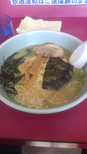 日曜11時30頃到着、席数は然程多くは無いですが、すでに6割方先客がありました。 注文制なので、ラーメン(¥550)を注文。水はセルフです。 少しの待ち時間の後、ラー着。 ビジュアルはラーショ定番のもの。小ぶりなバラロールチャーシューと海苔がそれぞれ1枚、あとはメンマとワカメ、小口切りされた青ネギがアクセントを加えます。 スープは豚骨醤油で軽く背脂が浮かびます。若干濃いめのスープですが、飲み干せないほどではありません。炭水化物好きな方はライスも注文してラーメンライスにするといいかも。 実はラーメンショップ日本一と言われる牛久結束店に行ってきたのですが、口コミを書かれている方がここの市貝店は、パンチのあるスープだと書かれていました。 こちらもスープはくどくなく、あっさりしていて美味しいです。自分は普段は清湯系の中華そばしか食べないのですが、こちらのラーメンもほぼ外さない味です。 メニューの写真を撮り忘れましたが、醤油系の他に、塩もあるようです。