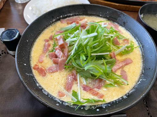 Read more大変満足させて頂きました。12月10日木曜日 12時30分に事前に電話予約で伺いました。入店して5分後には食べ始めましたので嬉しかったです。5名でポーク鉄板生姜焼定食を頂いたのですが肉厚でもホント柔らかく、またソースも繊細で深い味わいがあり皆で嬉しい思いになることができました。それと10年前から思うのですが通常付いてくるお味噌汁時間によっては作りおきの少し淀んだモノが出てくるのが普通だと思いますが、何時も作りたてが出てきますね。オーナー様の性格が出てるんだと思います。私は近くでコンビニを経営してます。以前は200メートル先に隆さんがあったのですが移転されて、それだけは残念に思います。これからも斬新なメニューづくり頑張ってください。また寄らせて頂きます。次はカルボ...