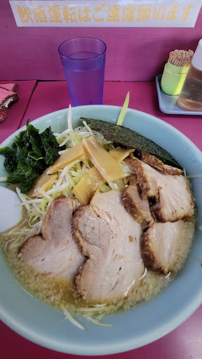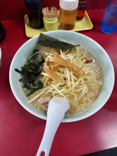 日曜11時30頃到着、席数は然程多くは無いですが、すでに6割方先客がありました。 注文制なので、ラーメン(¥550)を注文。水はセルフです。 少しの待ち時間の後、ラー着。 ビジュアルはラーショ定番のもの。小ぶりなバラロールチャーシューと海苔がそれぞれ1枚、あとはメンマとワカメ、小口切りされた青ネギがアクセントを加えます。 スープは豚骨醤油で軽く背脂が浮かびます。若干濃いめのスープですが、飲み干せないほどではありません。炭水化物好きな方はライスも注文してラーメンライスにするといいかも。 実はラーメンショップ日本一と言われる牛久結束店に行ってきたのですが、口コミを書かれている方がここの市貝店は、パンチのあるスープだと書かれていました。 こちらもスープはくどくなく、あっさりしていて美味しいです。自分は普段は清湯系の中華そばしか食べないのですが、こちらのラーメンもほぼ外さない味です。 メニューの写真を撮り忘れましたが、醤油系の他に、塩もあるようです。