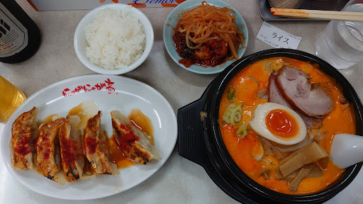 冬といえば「じゃん辛」を食べ続けてきた。 体が温まる辛さがたまらない。 そして、名物のセルフサービスのキムチ。 無料で本格キムチが食べれるこのありがたさ。 白菜とモヤシのキムチとご飯だけでも飯になるレベル。 餃子も地味に旨いんだわ。 この特徴的な土鍋で提供されるじゃん辛だが、 長年食べてきてやっと今、気がついた事がある。 インスタントの辛ラーメンが好きな私だが、これはもしかして、本物の辛ラーメンではと。 韓国の事はまったく知らないが、辛ラーメンが本物になると、こうなるのかもしれないと。 韓国には辛ラーメンというジャンルのラーメンが存在して、それが微妙に変化しながら様々な辛ラーメンが存在していると予想した。 銀座の桔梗でも辛ラーメンを食べているが、あれはまた全然違うが辛いのは辛い。 ここ、にゃがにゃが亭では、本場韓国の本格的王道の辛ラーメンを提供しているお店なのではないかと。 ということで、私はこの辛ラーメンに対して私流の洗礼を行った。 まずセルフサービスのとこにある、刻みニンニクを多めに持ってきて入れる。 テーブルにある壺の中の真っ赤な微粒粉末を大量に入れる。これは絶対赤パプリカの粉ではないはず。