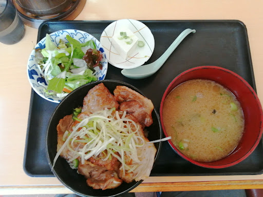 仕事の都合で近くに寄ったのでランチしました。ここで食べるなら、麺類よりも丼物がオススメです。知り合いから教えてもらいました。 今回はチャーシュー丼です。チャーシューを素揚げしてニンニクだれを絡めてあり美味しいです。 汁物はラーメンスープを使用した味噌汁です。海原雄山に出したら「この汁物を作ったのは誰だ!」と怒鳴られるレベルですが、クセになります。 接客は皆さんの口コミ通りです。せめて挨拶ぐらいは欲しい。まあ、そこまで丁寧な接客求めてないので、また寄ります。次回は豚キムチ定食食べます。 接客で★3にしたいですが、奇跡的に美味いので★4です。