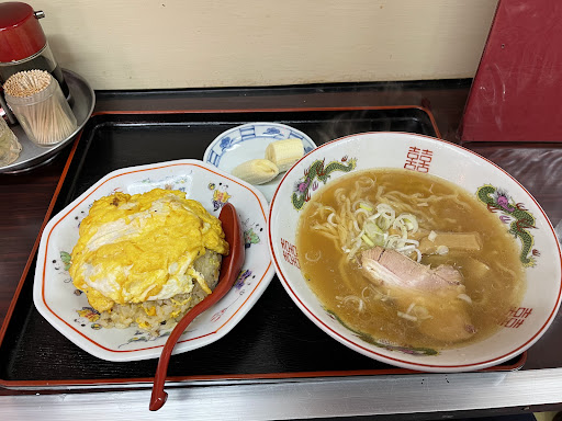 今回は連れは玉子チャーハン+半ラーメンのセット 私は五目チャーハンと餃子を注文 老夫婦で営業しておりキッチンもワンオペのため空いていても提供は遅めです