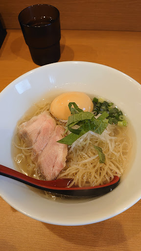 『過去投稿』 少し前までトンカツどんぱんだったところにラーメン屋さんができたので行ってみた。 メニューは牛骨塩ラーメン、牛骨塩チャーシューメン、替え玉のみのシンプルかつ塩ラーメン一本勝負がなかなか良い。 牛骨塩ラーメンをいただいたが、スープはあっさりしつつも独特の牛骨の香りが広がって深い味わい。 塩味がしっかりしていてはっきりした味わいで美味しい。 麺は細ちぢれ麺でサッパリ系のスープとは相性が良い。 スルッと食べれるので替え玉を頼んだが重くなくサッパリ食べる事ができた。 テーブルにある粗挽き黒胡椒を薬味に振ると胡椒の香りが牛骨にはぴったりでとてもいいアクセントになる。 総じて美味しかったのでリピートしたいお店。 一つだけ気になる点を挙げるとすると少し値段が高いかなと思う。 材料費や光熱費が高い昨今ではこのくらいとらないといけないのは理解できるけど。。。 近くに魚介スープのラーメンの名店「菜」があるが「菜」はラーメン一杯の値段は750円、 対して牛骨塩ラーメンは900円と結構高い。 チャーシューメン1200円も高く感じる。 「菜」でチャーシュートッピングを頼んでも1050円。 「菜」が近くなければ良かったが近いだけにどうしても比較してしまう。 750円とまで行かなくても800円くらいだと最寄りの「菜」と比較してもまあいい感じなのでは?という感じ。 とは言え牛骨ラーメンはなかなか珍しいし美味しかった...