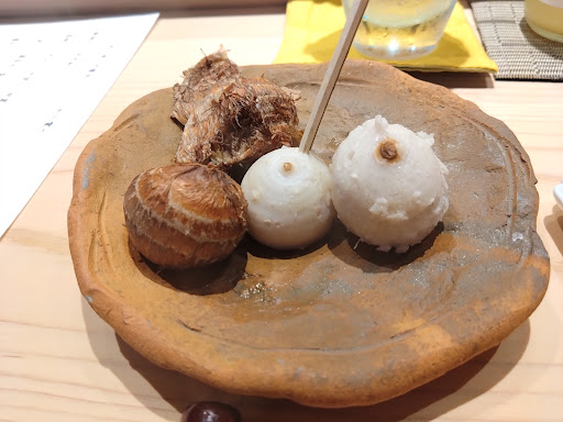 Read more美味しくて写真最初だけしか撮れませんでした。 旬のものをお出ししてくれるので、季節ごとに通いたいお店です。 手の込んだ丁寧な仕事をされており、初めて頂くものも有りましたが美味しかったです。あん肝初めて食べました。臭みもえぐみも全く有りませんでした。もう美味しいしか言ってなかったです。 夫は玉ねぎ醤油に漬けたカツオに感動していました。 デザートは別に美味しい珍しい品をお出しして下さるのですが、その前の玉子焼きがあれ1枚全部食べたいくらいです。 内容はかなりの高コスパです。お腹いっぱいになりました。 ランチは下戸な我等がノンアルコール注文しても、他の方もノンアルコールが多いので入りやすいです。 大将や助手のお兄さん達、スタッフのお姉さんの接客も素晴らしいです。 次は冬に伺いたく思います...