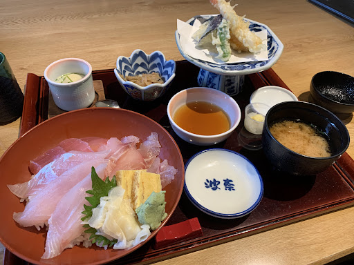 波奈の海鮮寿司は値段と質のバランスがよく、大変美味しくいただいた。 妻は寿司ネタのワサビが多すぎることに不満で、一巻一巻サビを払って食していた。確かに私のも多いなと思った。お子様にぎりセットは寿司に蕎麦うどんまでついて、小学校高学年ぐらいでないと食べきれないぐ...