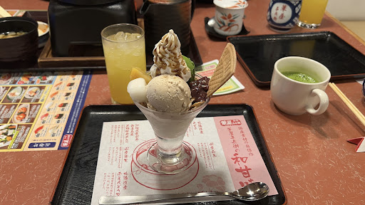 We loved this place! As tourists, this place was extremely easy for us to navigate from start to finish. I do have to note that they do not have an English menu so we needed to use Google translate, which was no problem for us. My husband enjoyed the chicken and mushroom with dashi “gold” soup and I enjoyed the tempura and sushi set. Love the convenience of the self-serving all-you-can drink drink station and the dessert...