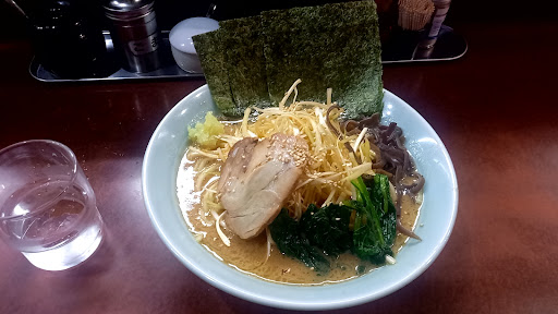 Read more最近の家系熱から未だに覚めやらず、しかし横浜への仕事も最近無ければ、プライベートで行く気力も無く、近場を攻めています。 その中で、このお店は中々の当たりなお店でした。 この日はネギらーめんに味玉、普通のライスを注文しました。 わざわざ「普通」としたのは、半ライスはランチで無料提供しているので、差額の50円をトッピング券買って出せば普通サイズにしてくれるとの事だったので。 若干ややこしいが、ワンオペのお店なので仕方ないと思います。 肝心のラーメンはといえば、豚骨出汁の濃厚な薫りも良いし、かえしも適度な濃さで醤油の薫りも活かされているし、麺も家系らしい中太のスープが絡みやすいもので、ご飯がホントに美味しい。 ネギはピリ辛で味のアクセントになっていて、更には細切りキクラゲが入っているのもいいです。 家系ですが、博多豚骨も意識した作り方なのかも知れません。 同行者の塩らーめんのスープも頂きましたが、これも豚骨の旨さを活かした丁寧な味を感じました。 豚骨スープに自信があるように思いましたね。 お隣の小岩の作田家も豚骨が柱にある家系なので、東京東部住みの私には中々嬉しいものが有ります。 ...