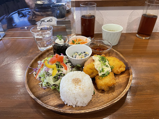Great little café located a few minutes north of Ichikawa Station. I had the âMogu-Mogu Plateâ for lunch and was very satisfied with taste, volume and variety of the ingredients (and they make one of the best tartar sauces you will find around Tokyo). The half-size cheesecake as a mini-dessert option was great, too. Staff is very friendly and welcoming. Would come again anytime. The approach to the restaurant is on the east side, from Mamaginza-dori. On Google Maps it looks like there might be a way to enter from the west side, too, but...