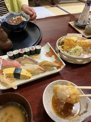 Read more平日のランチ11:50頃入店で利用しました。 団体さんが数組入っていて、カウンター席を除きほぼ満席でした。着席後すぐに注文しましたが、先に茶碗蒸しが提供されたものの、刺身ランチが12:20頃、天ぷらランチが12:30頃とかなり待たされました。前出の方にも「提供が遅い」と 同じような書き込みがあるので常態化している様です。時間のない方にはお勧めしません。ネタや味はいいのでとても残念です。 カウンターで寿司を握る板前さんは手持ちぶさたに見えました。運ばれていくボリュームある握り系は提供が早そうです。ホールもパートさん2人居てしっかりテキパキ対応しているので、問題は見えない厨房だと感じました。 店頭に4台分の駐車場スペースありますが、1台分は通路確保もあり封鎖、さらに1台は店名が入った業務用車が置かれ お客が使えるのは実質2台です。その点も配慮に欠けます。店内も客が見えなくていいものが雑然としていて 清潔感あまり感じずでした。2度目はないです。 場所はマルエツ...