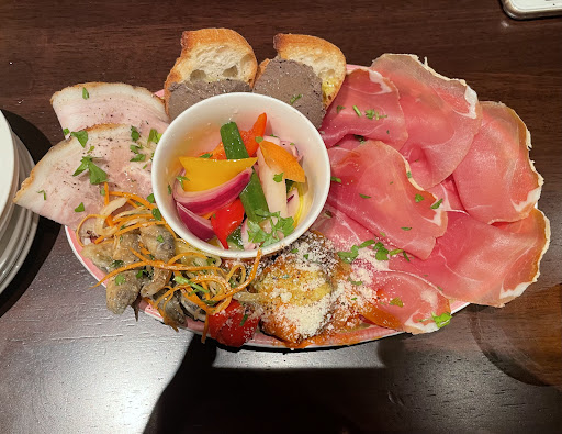 本日のお任せ前菜盛り合わせ(¥1,320)は生ハム、ローストポーク、ラタトゥイユ、ワカサギのフリット、ピクルス等が豪勢に盛り付けられており、見た目も華やかで気分が高まります。そしてどれも美味しい!
