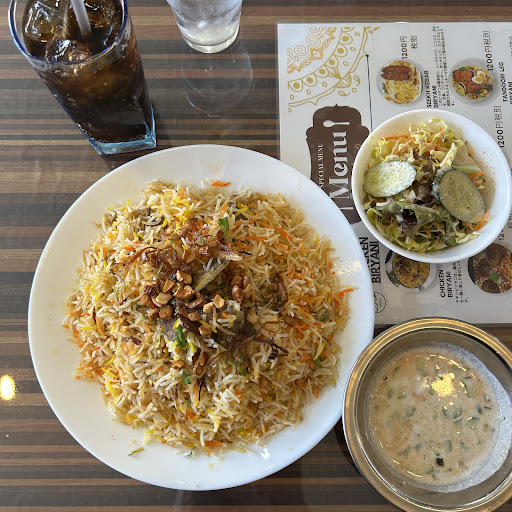 チキンヤクニビリヤニ とっても美味しい!スパイスが口いっぱいに広がる。少し辛い(辛さ耐性0の人間)一緒についてきたソース(?)はヨーグルトにスパイスがかかったような不思議な味。一緒に食べるとさらに美味しくなった。