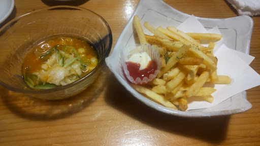 å€äžã«ä»äºåž°ãã«èšªããŸãããé«äŸ¡ãªæ¥µäžæµ·é®®ãã©ã¡ãããæ³šæããŸããããã«ãžã¥ã¢ã«ãªæµ·é®®é£äºå±ãããšããŠã¯ç¹ã«ãããªã©ã®ãã¿ãè¯ãå°è±¡ã§ããšãŠãçŸå³ã§ãããã€ãŒãã€ã³ã§ãæã¡åž°ãçšã®åè§ããã©å®¹åšãªã®ã¯æå¬ã§ããããç¬ æ¥æ¬é ã¯ã寿åžãåºèº«ã«åããã人ãå€ãå²ã«ã¯ã©ã€ã³ããããå°ãªãå°è±¡ã§ãããæé ãªäŸ¡æ Œåž¯ã§ãåéžãšãã§ã¯ãªãã§ããé®®éã«ã¯ããåãã©ã€ã³ãããã ã£ããšæããŸãã è¥ãåºå¡ãããå°äººæ°ã§ä»åã£ãŠããŸããããçããéåžžã«æ°ãå©ãããŠãããæ¹ã ã§ã坿ããã女æ§åºå¡ã¯ç§ãæ¥æ¬é ïŒçš®é¡ãäžåºŠã«æ³šæãããééãããªãã確èªãã«ããŠãããèª¿çæ åœã®ããã£ãšãã仿ã®ã€ã±ã¡ã³ãªç·æ§åºå¡ã¯ç§ãã°ã©ã¹ã®æ¥æ¬é ãæ®åœ±ããŠãã®ãèŠãŠããã«ãæã£ãŠããŠãããŸããã ...ãã ãå¿ããæé垯ã ãšåã£ãŠãªãããããªãã...