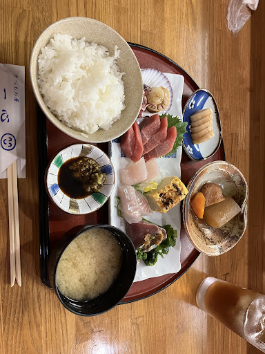 お刺身の量、新鮮さ◎ 煮物の素晴らしい味◎ しじみのお味噌汁◎ お漬物◎ そして最後にアイスコーヒーまで ※「ご飯もおかわり出来ます❗️」と一声かけられました。