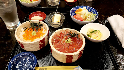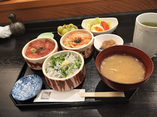 Read more2023年8月17日に親友と山梨旅行に行った時にランチタイムでお昼ご飯にここに行きました。初めは車で行っても看板とか出ていないので、分からなくて、裏道から出て来る時にここのお店を見つけました。丁度時間は12時頃、駐車場はまだ、数台空いていましたよ。店の入口を入ると廊下になっていて、なんか幻想的な空間でした。もう1枚引き戸を開けると店の中に入店しました。テーブル6席位とカウンターがあります。テーブル席は予約済の札が出ていて、もしかしたら予約しないと入れないのかな?と思いました。2人だったので、幸いカウンターに着席出来ましたよ。ランチメニューは、◯丼セットと□丼セットがあり、それぞれミニ丼を2つか3つかを選べるセットがありますよ。私達は、◯丼、3つミニ丼セットにしました。丼は8種類から選べて、あいにくこの日は、いわしの漬け丼がもう品切れと言う事で、他の丼から選ぶ事にしました。私はまぐろ漬け丼、サーモン漬け丼、しらす丼の3つを選びました。1人前1800円になりますね。カウンターだったので、大将の手捌きが間近で見れるのも良くて、手際良く料理を作っていましたよ。20分位して、運ばれて来ましたよ。3つのミニ丼とあら汁と漬物にサラダなどがお膳いっぱいに乗っていましたよ。どの丼もとても美味しそうでしたし、お腹も空いていたので、まぐろ漬け丼からいただきました。まぐろ漬けはとても良く漬けられていて、酢飯との相性がとても良かったです。しらす丼は、醤油をかけて生姜を溶かしていただきましたが、こちらもしらすの新鮮さと生姜との相性がとても良くてご飯が進みましたよ。サーモン漬け丼も、まぐろ漬けと一緒で、サーモンがほんのり漬けられているので、どの丼もとても美味しかったですよ!ランチタイムなので、13:00でもう終了でしたが、ディナータイムには、お寿司などもあるみたいですよ。初めて行きましたが、とても海鮮丼3つも美味しく満足出来るお昼ご飯になりました。また、市川三郷町辺りに行ったら、ここに行きたいですね。今度は予約して行って...
