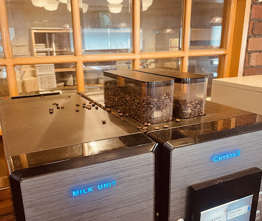 Read moreジョイフルは美味しいし安いしよく利用するのですが、ここは初めて入りました。 お昼の繁忙時間帯にフロアはワンオペ。 2組のお客様が声も掛けてもらえずしばらく入り口で待ってましたがそのままお帰りに💦 着座しているテーブルにカトラリーケースを黙って配り回る状態。。。 写真はフリードリンクサーバー機上の写真なんですが『新鮮なコーヒー豆から挽いています』の斬新なディスプレーかな?このままを補充ケース...
