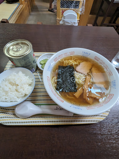 Read more土曜の13時過ぎに訪問。店内はテーブル席にカウンターと座敷。外観よりはそれなりに人数は入れそうです。駐車場は店舗正面の金物屋さん挟んだ左側。ちょっと狭め。今回は中華そば600円と半ライス130円をオーダー。業務用スープ的な感じなのかなと思っていましたがしっかり出汁の効いた美味しい中華そばです。具材もチャーシュー、メンマ、ネギの王道でチャーシューはモモ肉で適度な歯応えと柔らかさ。オーソドックスでありながら美味しい中華そばです。半ライスは普通のお茶碗一杯分。漬物がいい箸休めになりこれもしょっぱすぎず美味しい。中華そばは良いとして、他は全体的に価格は少し高いかなぁと感じる...