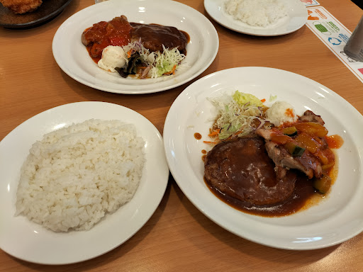 ナイフは不要で箸でいただくハンバーグ 少々パサつくもソースが潤いを補う 朝からハンバーグで幸せだ