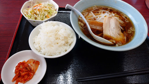 午前中医者に行き、前からBMしてあり、東側の大きな駐車場も空きがあり入ってみました。 土曜日の今日もランチがある。 大陸系の店のようでラーメンとご飯もののセット、おかずにご飯の定食メニュー等、かなりのメニューで、店内は今日も仕事のブルーカラー系のお客さん、家族連れと混雑していました。 各種ラーメンと揚げ物の「Bランチ」(税込750円)が気になり、醤油ラーメンを選択してメニューを待ちます。 3人で店を回しているようで、調理人は1人で配膳と洗い場を回しているよう。 メニューも多く、1人でこのメニューを作るのはすごい。 10分程で揚げ物以外がまず配膳されました。 シンプルな醤油ラーメンにご飯にキムチ。 ただこの醤油ラーメンのスープは大陸系の店でもなかなか美味い(笑)。チャーシュー、メンマ入りです。 キムチも本格的で塩辛いだけの味でなく美味しかった。 でも期待した揚げ物が唐揚げ2個。 ジューシーで熱々でしたが、メニューとしてはちょっと期待はずれでした。 ラーメンなしのAランチのが、4種から選べて良かったかも⁉️ 味は良かったので、次回来たら別メニューを注文して...