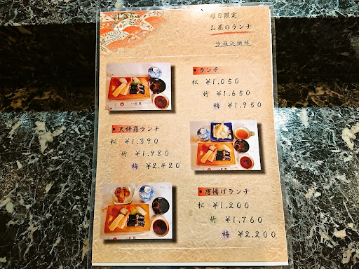 カウンター席に着座しランチメニューを手に取る 即行で「松」に決まりオーダーする