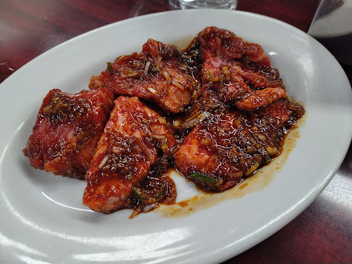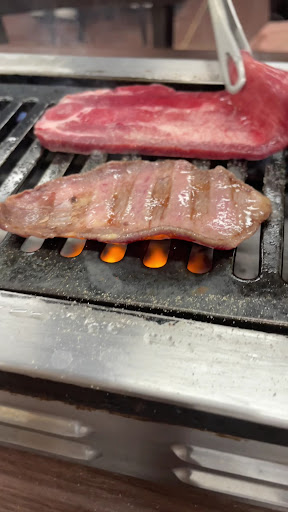 餐厅内,烤肉的烟雾缭绕。肉质鲜美,以大蒜和酱油调味。 这里的烤肉价格很低,在其他地方也找不到比这里更便宜的烤肉了。我最喜欢小包、盐舌、猪里脊和牛里脊。