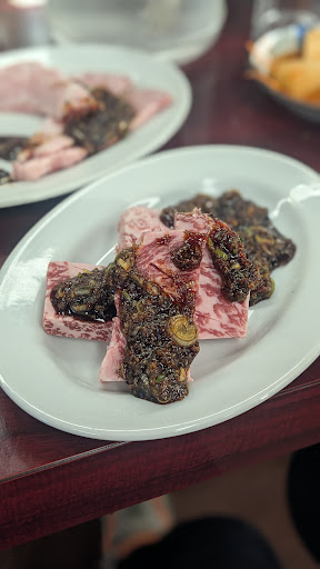 Read more店内は、焼肉の煙が凄いです。醤油ベースのニンニクで味付けしてあるお肉が、美味しいです。 価格がとても安く、この値段で美味しい焼肉を食べることができるのは、他には見つけられないと思います。私のお気に入りは、「小袋」「塩タン」「豚ロース」「牛ロース」です。 味噌汁も美味しい! Inside the restaurant, there is a lot of smoke from the barbecue. The meat is delicious, seasoned with soy sauce based garlic. The prices are very low, and I don't think you can find better yakiniku for this price anywhere else. My favorites are the "small bag", "salted tongue", "pork loin", and "beef loin".