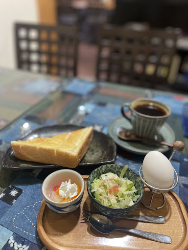 ドリンク代のみ400円のモーニングセット。 トースト、サラダ、茹で卵、デザート。 王道のコースです。
