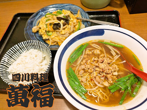 Read more日替りランチ「Bセット(950円)」の配膳 台湾ラーメンはお店の看板メニューらしく、辛さが特徴的 豚肉と玉子炒めには、キクラゲ、玉ねぎ、ピーマンなどの具材がたっぷり入っており、野菜の食感がアクセントになっている