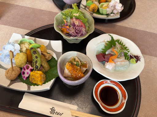 新鮮な旬の食材を愉しむランチ。丁寧に飾り付けがされており、料理人の拘りを感じます。 前菜、造里、揚物、サラダ、御飯、赤だし、漬物、デザート。どれをとっても、最高に美味しい。料理の順番も個人の状況に合わせて出してくれるところも嬉しいですね。