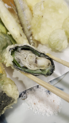 Read moreランチ利用♡ 海老2尾、カボチャ、百合根、牡蠣の磯辺揚げ、茄子、ピーマン、銀杏、麩、舞茸の天ぷらに お漬物、味噌汁、ご飯でお値打ちです♪