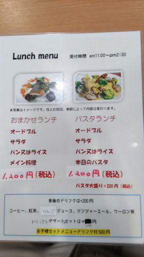 Read more土曜日の13時半にお邪魔しました。 駐車場も敷地の隣の未舗装のも含めれば十分な台数あります。 外観は他のクチコミでも挙げられているように倉庫風で通りかかっても見逃しやすいですが、意外にも中は明るくオシャレな内装です。 席は25席くらい?のうちの4割くらい埋まっていたぐらい。すぐに席に着けました。 おまかせランチを頼みました。クチコミ見ると980円や1100円のメニュー表が載っていましたが、いまは1200円に値上がりしていました。昨今の物価高なので仕方がないですが、お手頃感は無くなりつつあるかなと。ドリンクとデザートも付けるとプラス300円で1500円になりますから。 でも料理は使っている素材の数も多く、丁寧な調理していると思ったので、適正価格ではないでしょうか。味も普通においしく、盛り付けも丁寧でした。量は『多分』ちょうどよいくらい? 多分というのはライスを店の人が出し忘れたからです。(ライス写真が撮れてない) メイン料理を忙しくテーブルに置いていったあと、ライスは出てこないし、店員さん中に籠もって忙しそうなので、仕方なくメイン冷める前に食べ終わった頃、デザートが出てきました。 その日のお店の方は2名で回していては、席の埋まりが半分弱でも人手ギリギリでやっているのかな。と感じました。 外にアルバイト募集のノボリも立っていましたしね。 メニューの雰囲気ではパスタを推してるっぽいので、次はパ...