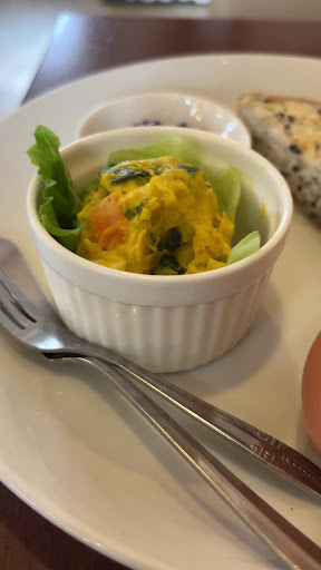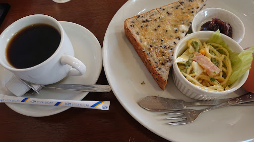 トーストの種類が4種類(白、黒糖、ゴマ、抹茶)、トッピングは3種類(小倉、ジャム、マーマレード)。ゴマ入りトースト初めていただきました。ゴマの食感が良く、とても美味しかったです。ブレンドコーヒーのモーニングセットは380円。昆布茶のサー...