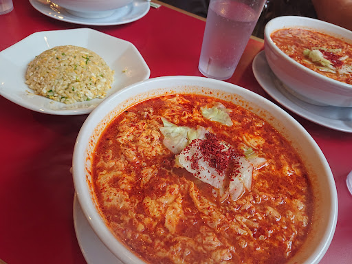 Read more2021/8/12 以前テレビで紹介されているのを見ていつかは食べに行こうと思っていた店です。 岐阜タンメン系列店という事で並ぶのを想定してお昼には少し早めの11時15分頃に到着。 私たちの前に一組待ちだったので早めに行って正解です。私たちが席に着くころには結構な待ち行列が出来上がっていました。 店舗は思ったほど広くなくて、カウンター席6席+4人掛けテーブル席×2しかありません。岐阜タンメンをイメージしていたので想像と違いました。 注文は食券機スタイルです。今回は初めてなのでオススメの「大辛」900円のストレート麺(写真の通り麺は3種類から選べます)を選択し、これまたオススメの「卵とじ増」120円と一番人気って書いてある半チャンセット200円を選択。おそらく王道中の王道の選択だと思います。