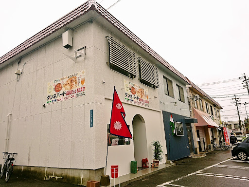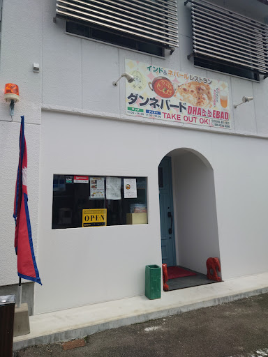 ネパールの国旗が風に揺られる様子がカッコいい お店ロゴの「Dhannebad」の“N”がネパール国旗であることもカッコいい