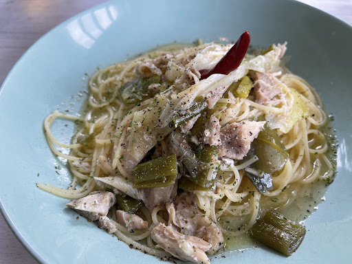 Not sure if their menu changes but I had the corn with peperoncino pasta. It was weird and nothing special. Husband had the cream-based pasta with tuna and onion. It could have been great but it was drowning in sauce (if you could call it that--it was more like a broth). Wish I had the pizza instead. Cute place though with...