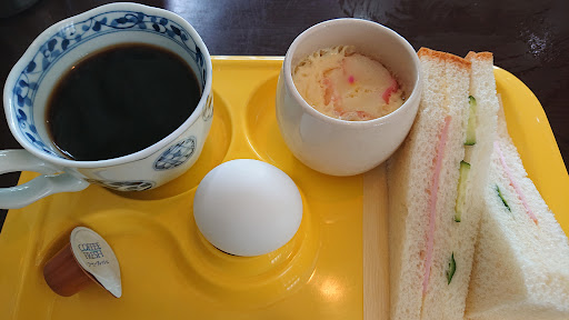 サンドイッチ、ゆで卵、茶碗蒸し。 アイスコーヒーはキンキンに冷えてます。 店員さんの手際の良さがすごく記憶に残り ます。