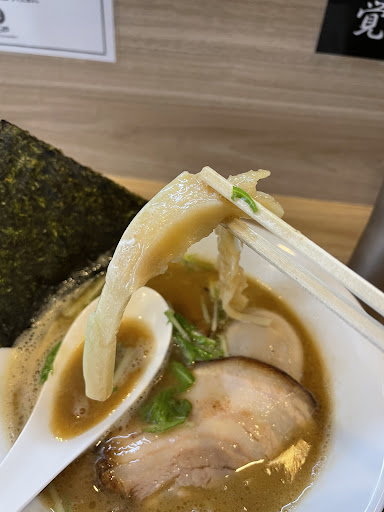 お店のぱっと見は黒ベースでガテン系かと思いきや、店内はダウンライトで白とダークグレーを基調にしたフレンチぽい佇まい。 オーナーさんも出立ちがシェフっぽくて物腰柔らか。 重厚などんぶりも高級感があり、店作りと麺作りへのこだわりを感じられました。 妹さん⁈と思しきお方も静かにサポートされており落ち着ける雰囲気です。 落ち着いてラーメンを食べたい大人向けなお店でした。 (暖房はわりと強めに設定していただいてましたがもう少し弱めでも充分暖かいですよ笑...
