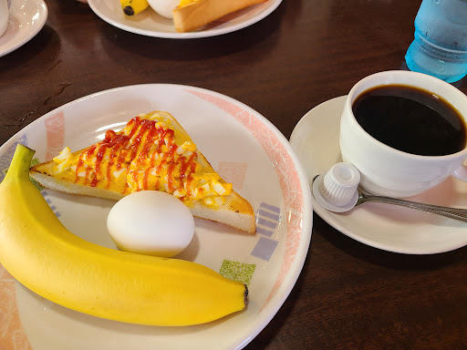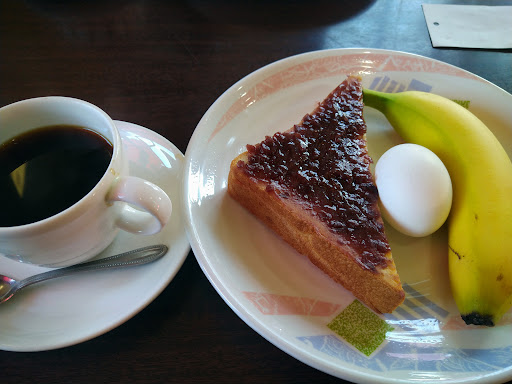 Read moreモーニング@470円を頂きました。 各種トースト、ゆで卵、大ぶりのバナナが付いてこの価格は昨今では安いほうだと思いました。 一つ注意があって、このお店は分煙等の措置はなく全席灰皿完備です。 そのためタバコの煙や臭いがダメな人は絶対に来てはいけないです。 逆に喫煙者にとってはパラダイスのようなお店です。 コーヒーを飲みながら思う存分煙草を楽し...