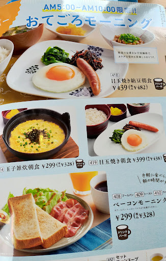 2024年3月26日(火曜日)開店から20分後程に行きました。大雨の土砂降りの中、私達より先客で3組程は居たと思います。土砂降りじゃなければ倍は混んでたかな…と思いました。混む理由が直ぐに解ります。最高のコストパフォーマンスのモーニングです。最高です。冷たいドリンクバーの種類は良いラインナップですしホットのドリンクバーも凄く良いラインナップです。種類豊富。注文したのは、おてごろモーニングの洋食と卵雑炊とポテトフライ。美味しかったです。ドリンクバーも凄く良いです。一宮市で一番に思いました。女性スタッフ様が1人でレジ、お客対応、ドリンクバー等の洗浄後の並び替えセット、テーブル掃除諸々全て頑張って仕事してました。サービス業の神レベルの仕事でした。 良い点 ホットドリンクバーの種類豊富で全て美味しいです。お値段以上の満足度です。落ち着いた雰囲気の店内です。 悪い点 私の私見ですけど、我が家からは車で40分程かかるので、そこだけが残念です。私見ですいません💦近所の人は勝ち組です。 それでも私は、これからもちょくちょく通いたいです。次はコー...