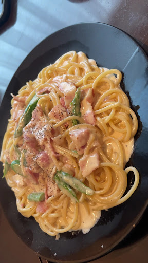 お味の方ですが、太麺で麺はもっちり、イカスミパスタはかなりのパンチがあって今まで食べたイカスミの中で1番美味しかったです。イカスミパスタ好きなら外せないかと。 連れ合いのパスタも相当美味しくて、思わず声が出る。何処か安心する味。もっちり太麺にソースが非常によく絡む。 これは何を食べても美味しいんだろうなと思いました。地元の人気店なのも納得です。
