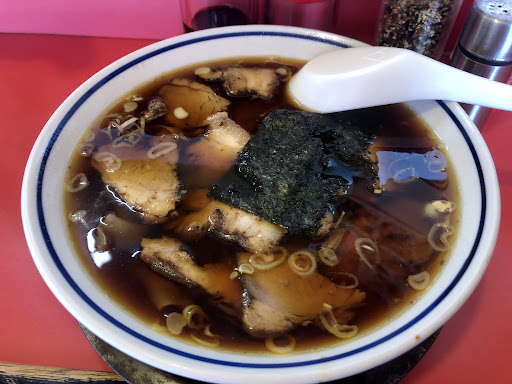 Read more1980年代はランチで週イチ訪問、それ以降は年に1回くらいの訪問。今は女将さんと若い衆のお二人なんですかね。 平日の11時半丁度に行ってみたら、まだ半分シャッターが降りていて店内では準備に忙しそう。近所の用事を済ませ10分後に行って入店。 今回はワンタンメンを注文。スープは見た目が黒々…だが実際はそれほど醤油辛くはない。しっかり味の主張はあるが、尖っていない味わい。途中でラー油や胡椒で自分好みに変えて楽しめる。 麺は細めで若干硬めだがこれは個人の好みの範疇。とろんとろんのワンタン皮に絡んでいろいろな食感が楽しめる。チャーシューの食感も味も好み。 夜の営業は「だいたい6時半ごろか...