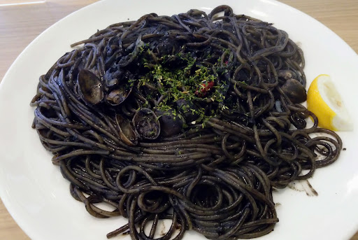 ãã¹ã«ãããã¯ã¯ãªãŒããŒãªãœãŒã¹ã§ 麺ãã¢ã«ãã³ãã®è¹ã§æ¹æé«ã麺ãé£ã¹ãåŸã®ããŒã¹ãã«ãœãŒã¹ãã€ããŠããšã£ãŠãçŸå³ãããšåšãèšã£ãŠãŸããã