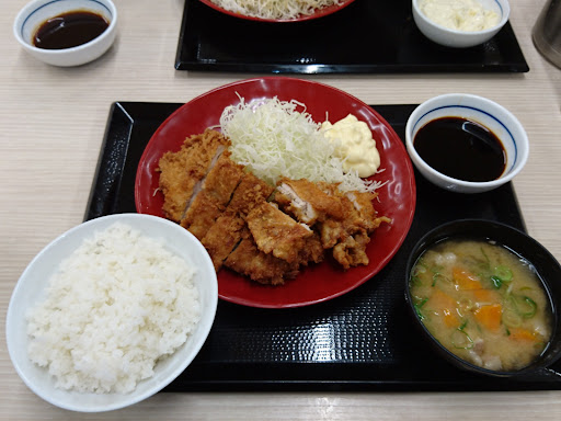 カウンター席に座ったら空いた隣をふきんで拭いた勢いで米粒飛ばしてくるし、とある女性店員は語尾の音量が小さ過ぎて客と何度もやりとりしてるし、食事の乗ったお膳を「取れ」とばかりに無言で突き出してくるし、両手で2膳だから自分で置けないにしても何か言えよって思うのは私だけ?感じ悪い。 ご飯は茶碗の外に米粒いっぱい付けてくるわ、豚汁?かす汁?は生臭いわで気持ちよく食べるには程遠かった。 客商売なめんな!