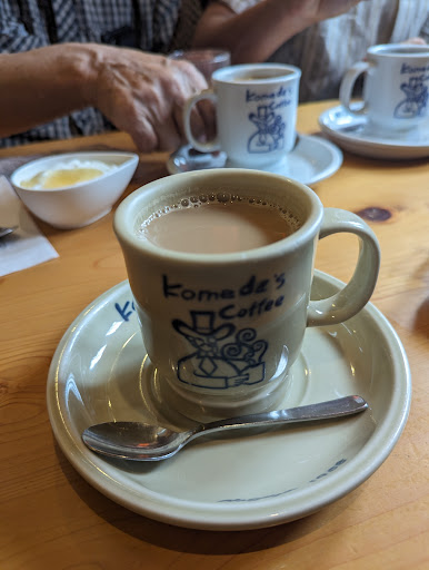 Well known coffee and breakfast diner chain in Japan. You can order any coffee and get a free half cut toast of bread with your choice of jam or margerine and a small side of egg salad, hard boiled egg or sweet red bean paste. They also have a nice selection of sandwiches, we tried the miso chicken katsu toast and enjoyed it.