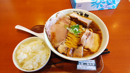 2021.12.15更新。 三郎ラーメン、麺大盛りニンニクありで! 二郎系を想像していたが、出し粉を効かせた醤油ラーメン。ベースの出汁に若干のトロ味があり二郎系のような化調さはなく食べやすかった。ただ、大盛り(麺300g)が他店の大盛りのソレとは違い、かなりの量。大食漢の人にはコスパ最強だと思う(笑) 煮豚はかためで肉々しいバラブロックなので好き嫌いは分かれるところ。自分は苦手の部類かな…。 太麺は食べ応えある分、スープと絡みづらいのが難点かな〜。水曜だったので、たまご券使用で煮豚券を回収(笑)