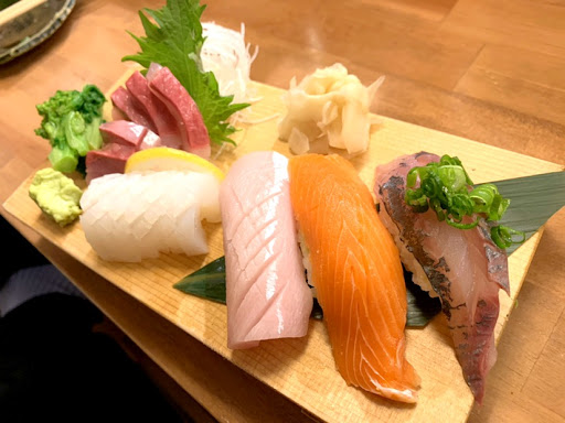 お寿司は鉄火巻きにしたが、一緒に盛られた刺身は鰤とアイナメにビックリ。