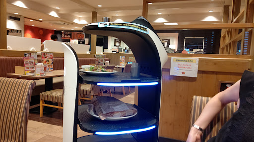 Read moreすかいらーくグループのファミリーレストラン。無料wifi有。食事はもちろん、カフェとしても利用できるお店。 注文は各テーブル席にあるタッチパネル。お冷やドリンク類はセルフサービス。タバスコ等の調味料系もドリンクバーコーナーにあります。支払いはセルフレジ。 料理の配膳は、ロボットと店員さんで両方あり。 取り皿がほしい等の場合は、店員さんにお願いすると持ってきてくれました。