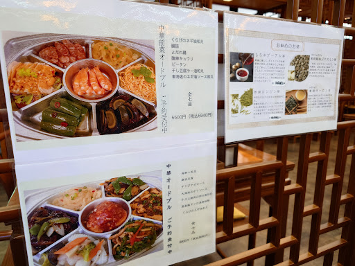 厳美渓のもう少し奥『いつくし園』の中にある、本格を謳う中華料理店。週末のちょうど正午頃、ランチタイムに、気になっていたからと親と来店 温泉利用客のみ等の縛りは無く、当店のみ利用でも可能なようです 注文はタッチパネル式で、漁れば無数とも言えるラインナップのメニュー 点心、(アルコール含む)ドリンクが特に多いようで、特に中国茶だけで10種類程度はあったような…期待が持てます(結局それは頼みませんでしたが)