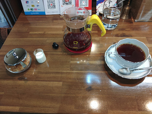 パノマゲイシャ¥時価(本日1,200)2杯分 香りを楽しむ為、手廻しミルで客が挽く 香り豊かだが、自分には高嶺の花のような印象 コーヒーと言うよりも紅茶のような飲み口に感じた。 逆にコーヒーを苦手とする人にも飲みやすさが出ると思われる 一般的にコーヒーの香りがよい=酸化(時間経過)することで酸味が強く現れるが、典型。 温かい内に飲むに限る。 唯一の失敗は香りを失いたくないあまり、出された直後にミルクとの親和性を感じることを放棄したこと。これが分かれば、コーヒーを苦手とする人にも勧められる(苦手な人に無理して飲めとは普段も言わないけど、好きになるきっかけくらい...